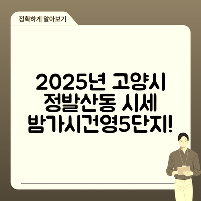 경기도 고양시 일산동구 정발산동 밤가시건영5단지 아파트는 2025년 10월 시세에 대한 다양한 투자 방향을 제시합니다. 이 지역의 시세를 이해하고, 투자 전략을 수립하기 위해서는 여러 가지 관점을 고려해야 합니다.