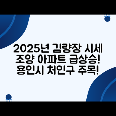 경기도 용인시 처인구 김량장동 조양 아파트는 최근 몇 년간 큰 변화를 겪고 있습니다. 2025년 10월 시세에 대한 예측은 이 지역의 부동산 시장 동향을 이해하는 데 중요한 요소입니다.